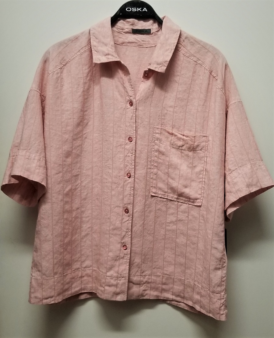 Straight, comfortable and pleasantly casual – this OSKA blouse can be combined with anything your summer wardrobe has to offer – due to its comfortable H-shape. It has a five button panel and a classic blouse collar. A patch pocket gives it a sporty flair.