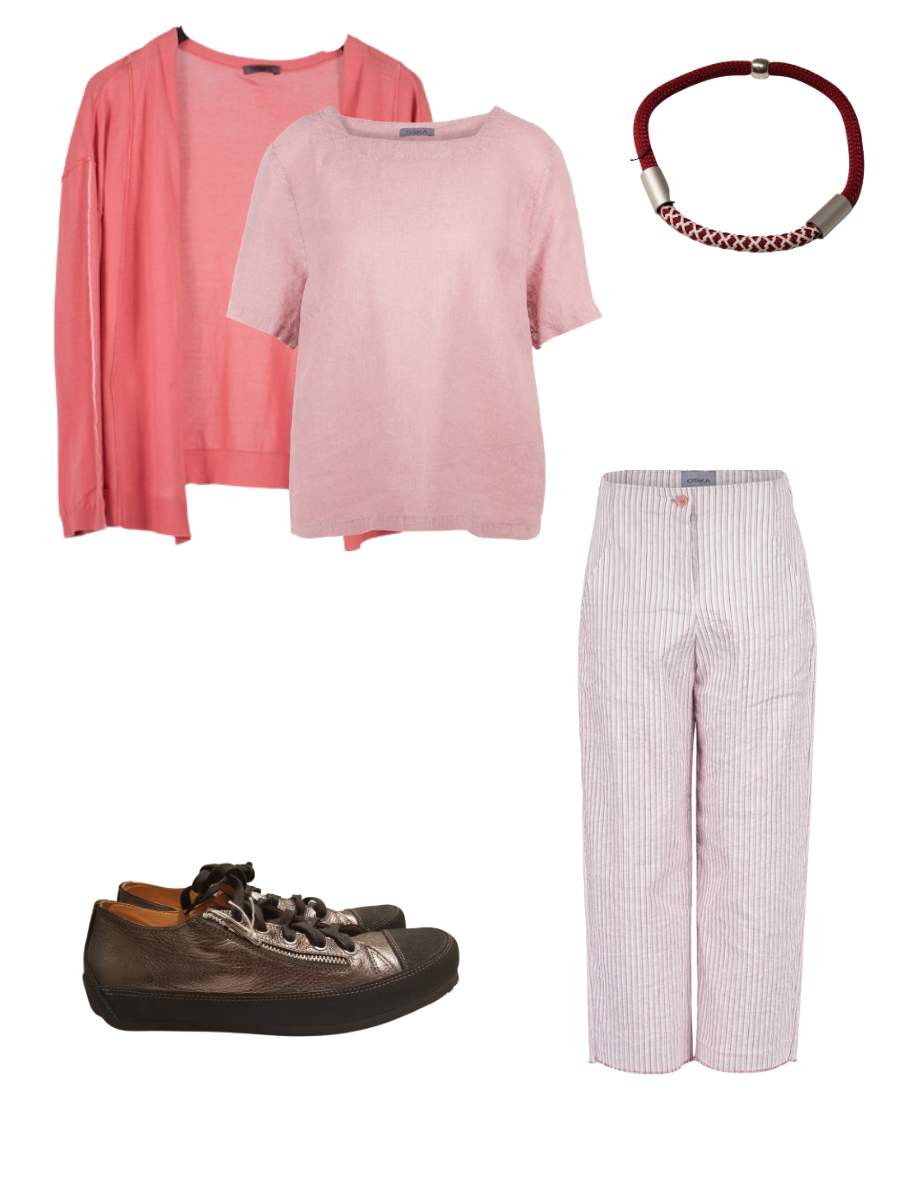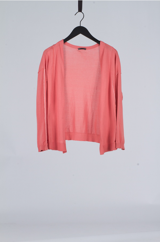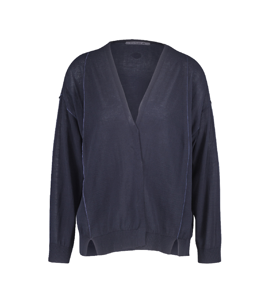 This “small” cardigan should be a part of every summer wardrobe. It is comfortable, can be combined universally and will on many occasions give your outfit that decisive kick to becoming eye-catching. What makes this OSKA jacket with no fasteners so attractive are its elaborately designed details such as contrasting seams at the sleeve inserts, on the front and on the hemline slits. Lightweight pure cotton knit with contrasting seam details, exclusive at OSKA