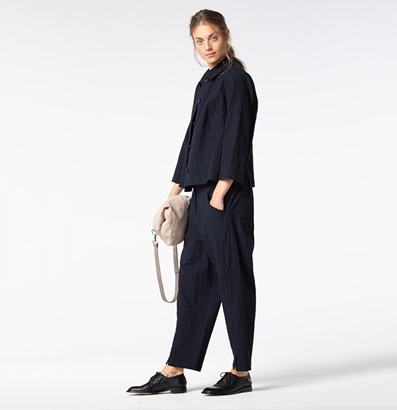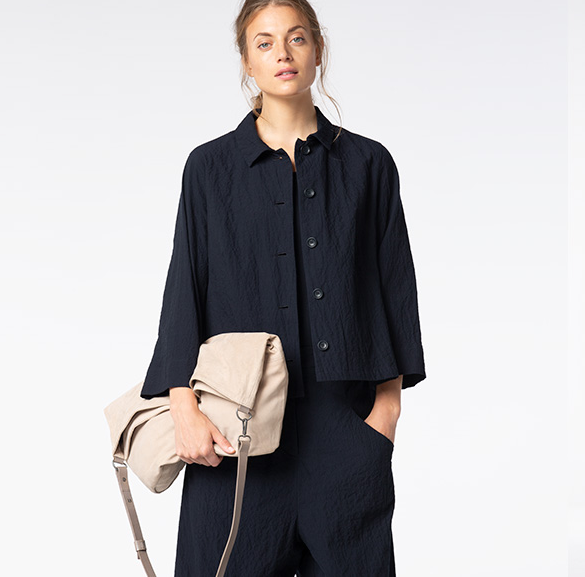 The new business look? Works best with this OSKA jacket. Its design coordinates are: short, boxy and perfect in combinations. Cleverly placed seams give it an attractive fitted look. This adds a feminine appeal – together with the small collar, the button panel and slits at the back hemline and on the sleeves – which will make this jacket a favourite, even outside of the office. Cotton crepe
