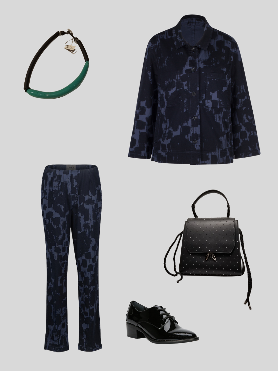 This short boxy OSKA jacket is a wonderful everyday companion: at home, at work, on a stroll about town or a barbecue party. Its sporty jeans look-inspired features – high quality cotton, distinctive seams and broad hemline – are clearly evident. It is only at second glance that one discovers sophisticated details like different breast pockets: one of them is invisibly tailored and is on the inside of the jacket.