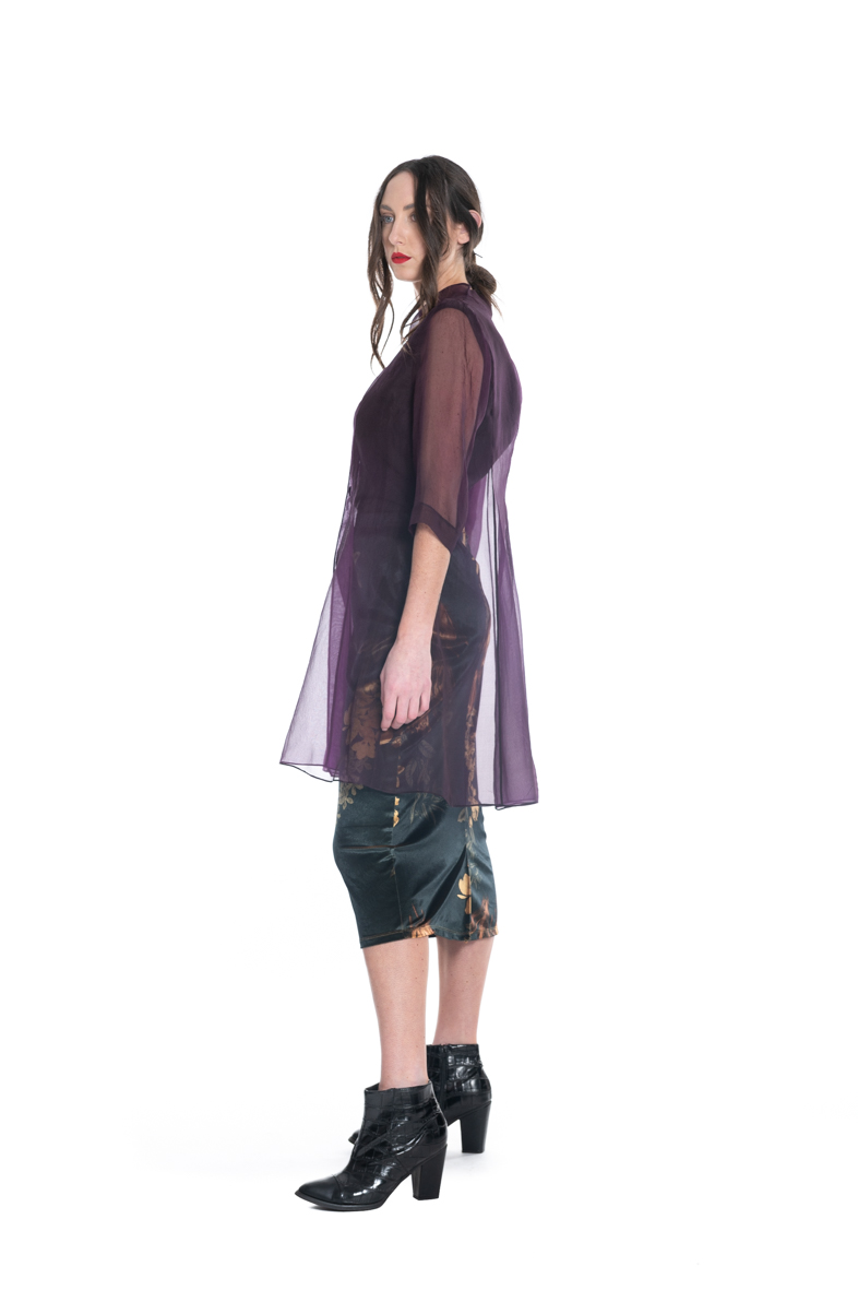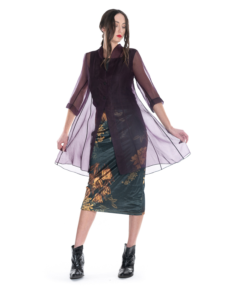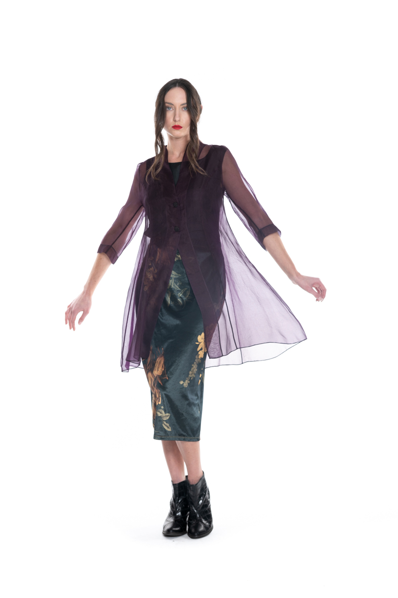 An elegant design with the Silk Florent Coat. It features two large buttons, low V-shape neckline, 3/4 sleeves. Style this coat as a light layer to fresh your look. It comes with the unique colour – raisin.