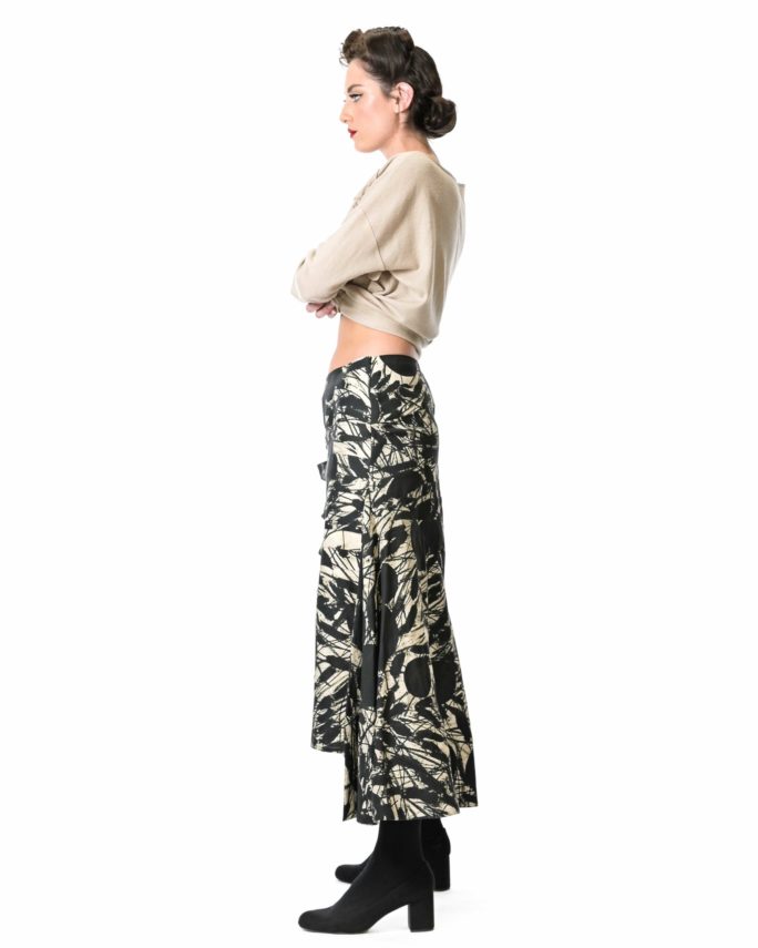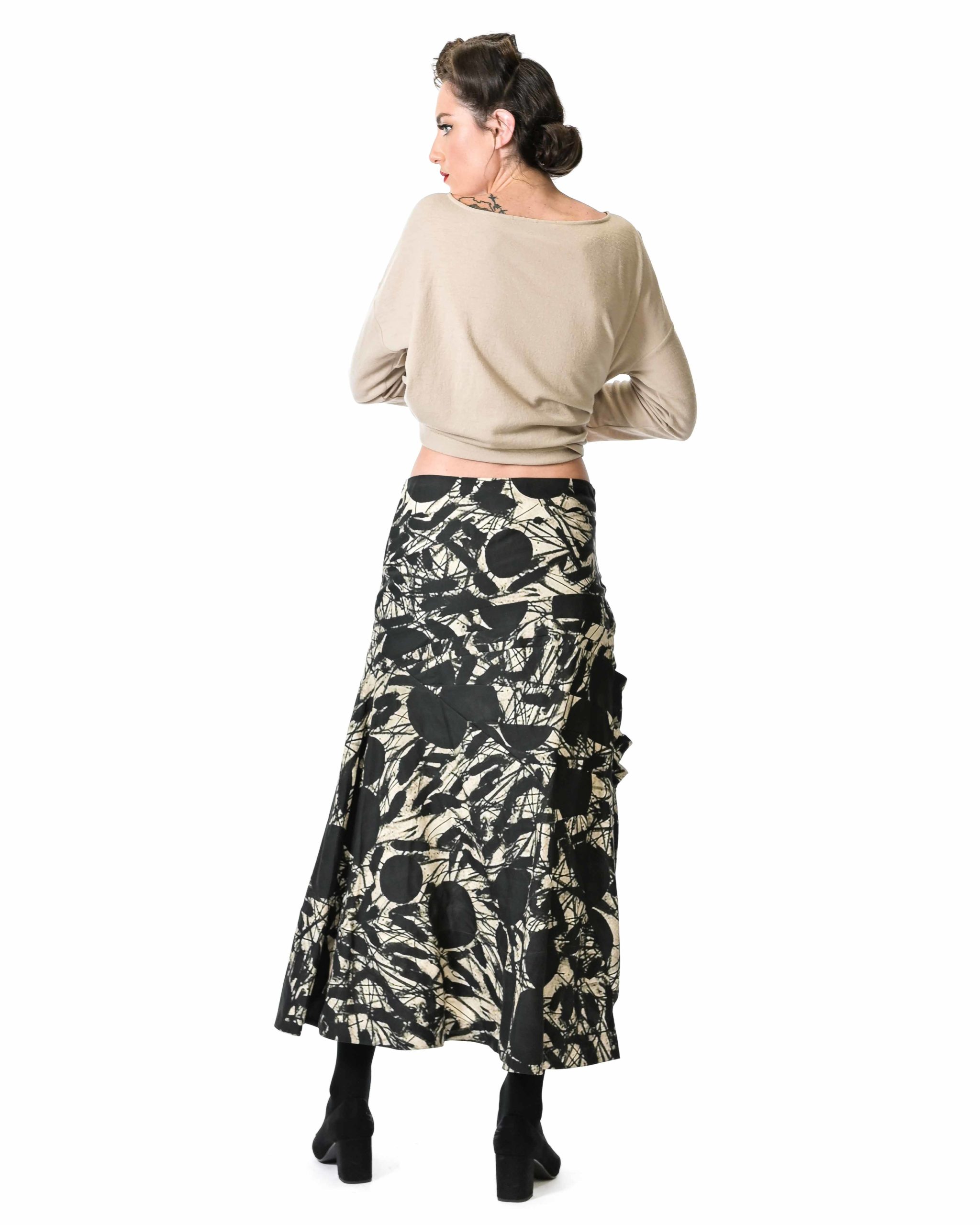 Smudge is an original print by Megan Salmon on a tencel linen blend fabric, the mixture of circles and organic lines creates a dynamic pattern that is strikingly beautiful.This skirt is sure to get some attention!